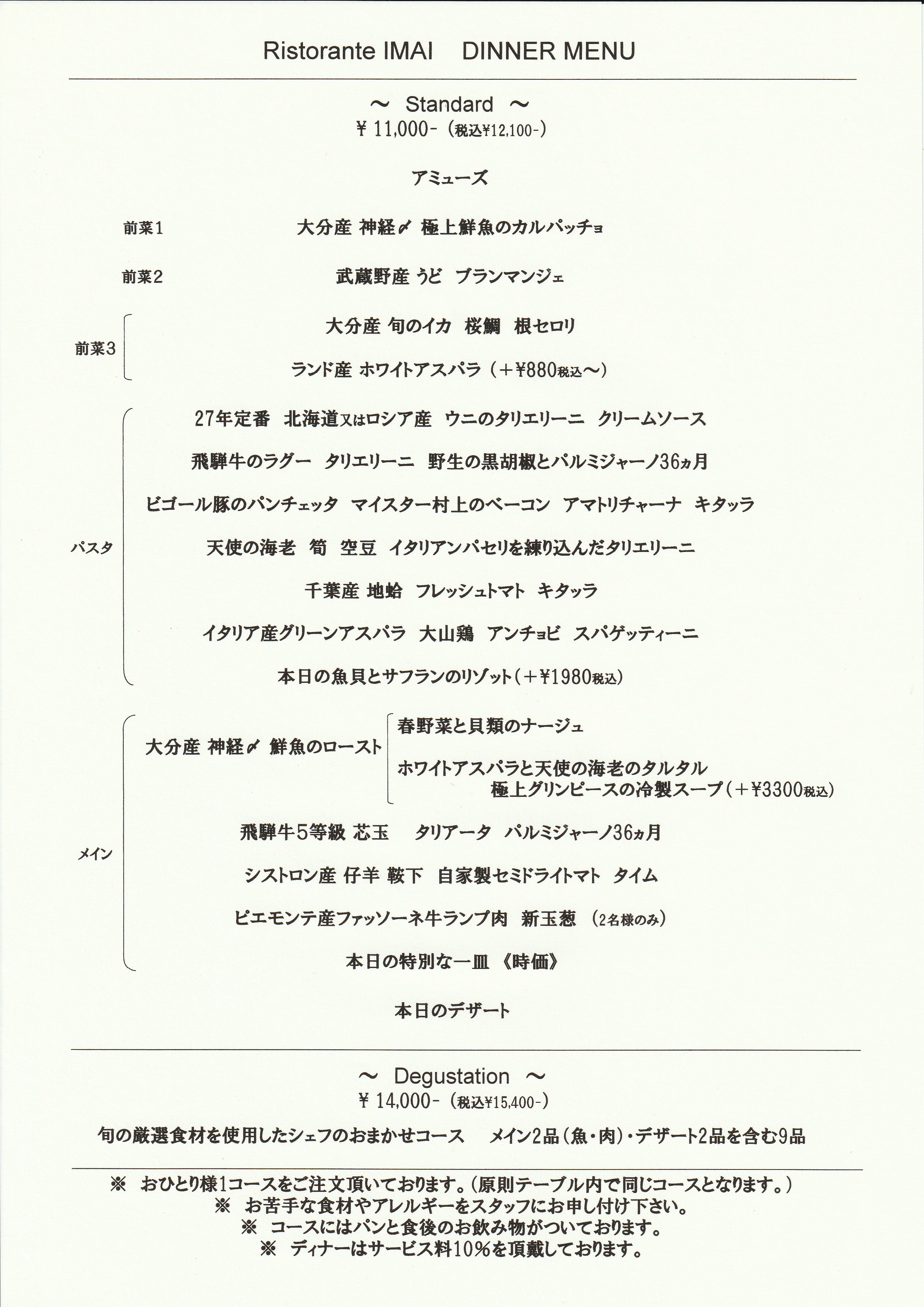 ・Degustation ¥14,000 (税込\15,400)
